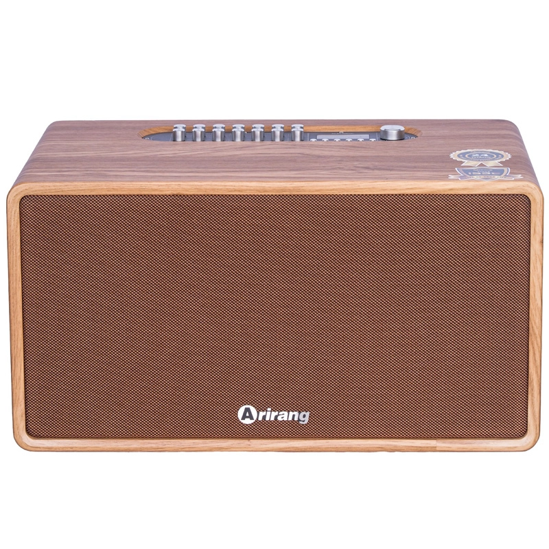 Arirang MB2iw sở hữu thiết kế mang phong cách vintage cổ điển đầy tinh tế, phù hợp với nhiều không gian sử dụng khác nhau như phòng khách, quán cà phê, phòng trà hay các buổi tiệc ngoài trời. Thân loa được làm từ gỗ cao cấp kết hợp simili vân gỗ, tạo nên vẻ đẹp sang trọng và tăng khả năng cộng hưởng âm thanh. Các góc cạnh được bo tròn mềm mại, mang đến cảm giác hiện đại mà vẫn giữ nét cổ điển đặc trưng.
