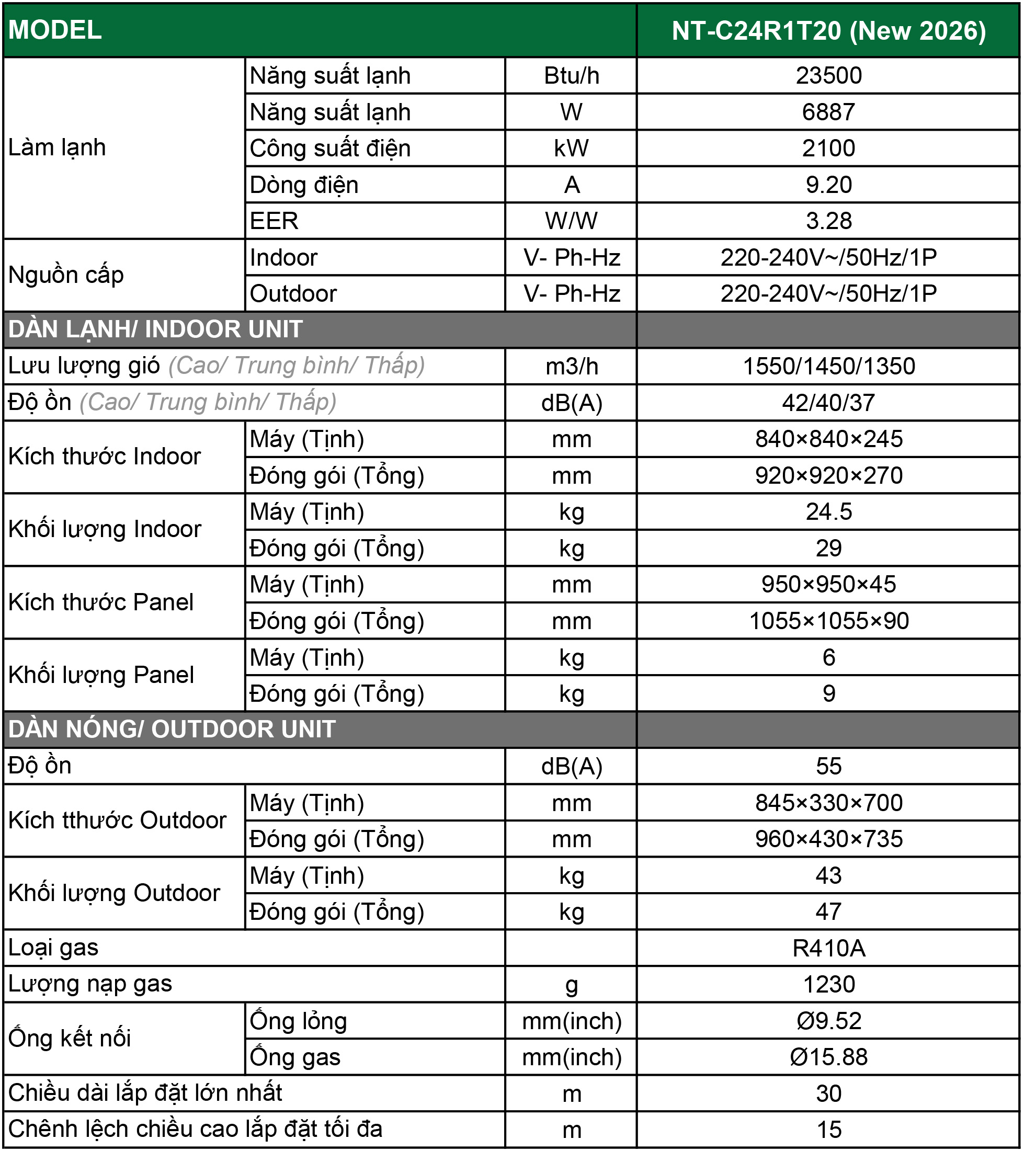 ĐIỀU HÒA ÂM TRẦN 1 CHIỀU NT-C24R1T20 LÀM MÁT HIỆU QUẢ, CHẤT LƯỢNG HÀNG ĐẦU